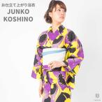 「レディース」「浴衣」【ブランド浴衣】お仕立て上がり浴衣 コシノジュンコ-JUNKO KOSHINO- 綿 黄色地 紫 黒