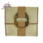 BVLGARI ブルガリ チャンドラ ベージュ ゴールド金具 ツイード/レザー 12661695 折り財布 コンパクトウォレット レディース 505744