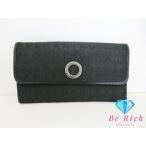 ブルガリ BVLGARI 二つ折り 長財布 ロゴマニア ブラック 黒 キャンバス レザー ロゴ 二つ折り財布 ロング ウォレット 【中古】bs3655