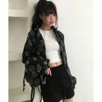 ブルゾン アウター ガーリースポーティ スタンドカラージップアップブルゾン(リボンプリント) レディース