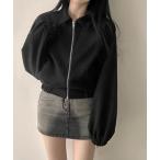ブルゾン アウター ボリューム袖ジップアップジャケット レディース