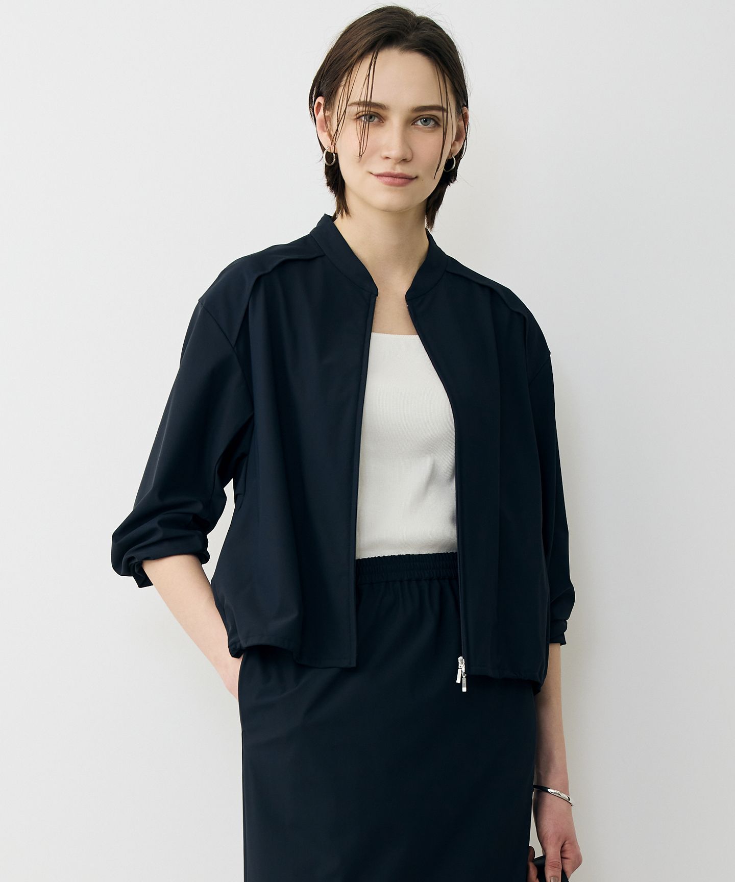 three dots(スリードッツ) カードボード ジップアップ ブルゾン