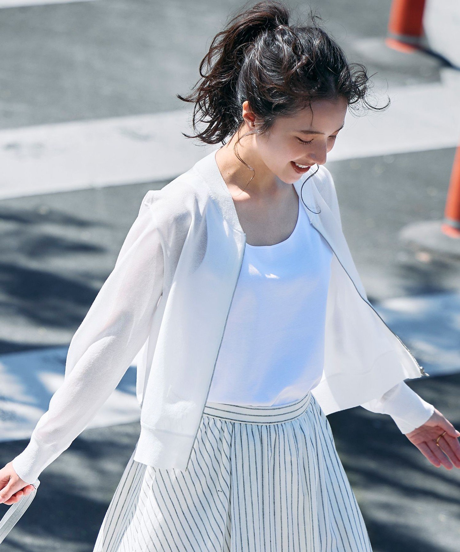 【SALE/30%OFF】DES PRES コットンストレッチエアリーニット ジップアップブルゾン トゥモローランド トップス カーディガン ブラック ホワイト【送料無料】