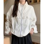 ブルゾン アウター コットン スタンドカラー フリル ジップアップ ブルゾン レディース