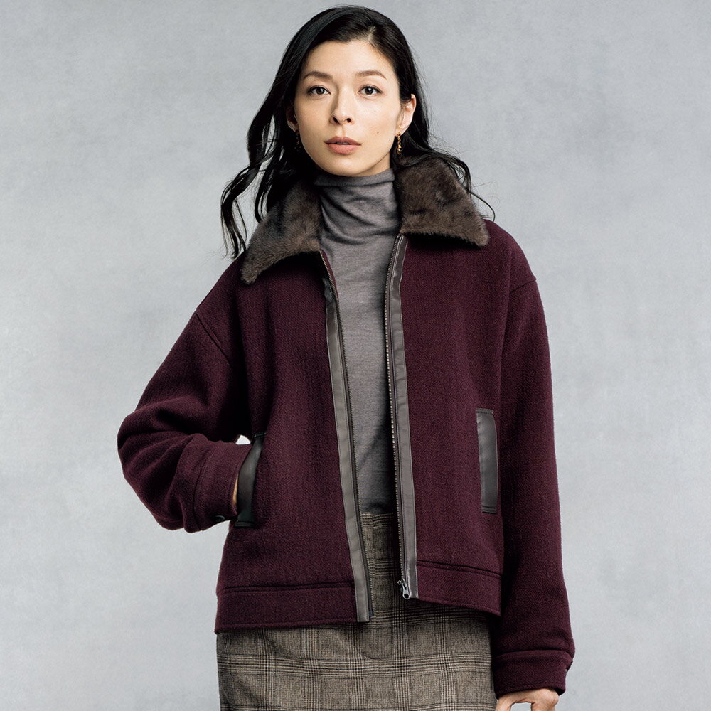 イタリア素材 ウール混 ジップアップ ジャケット ブルゾン ジャケット 125702