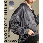 爆買 レディース アウター ブルゾン サテン ボンディング ジップアップ 長袖 ドロスト グレー ベージュ 大人可愛い 大人 可愛い 30代 40代 50代 60代 サワアラ