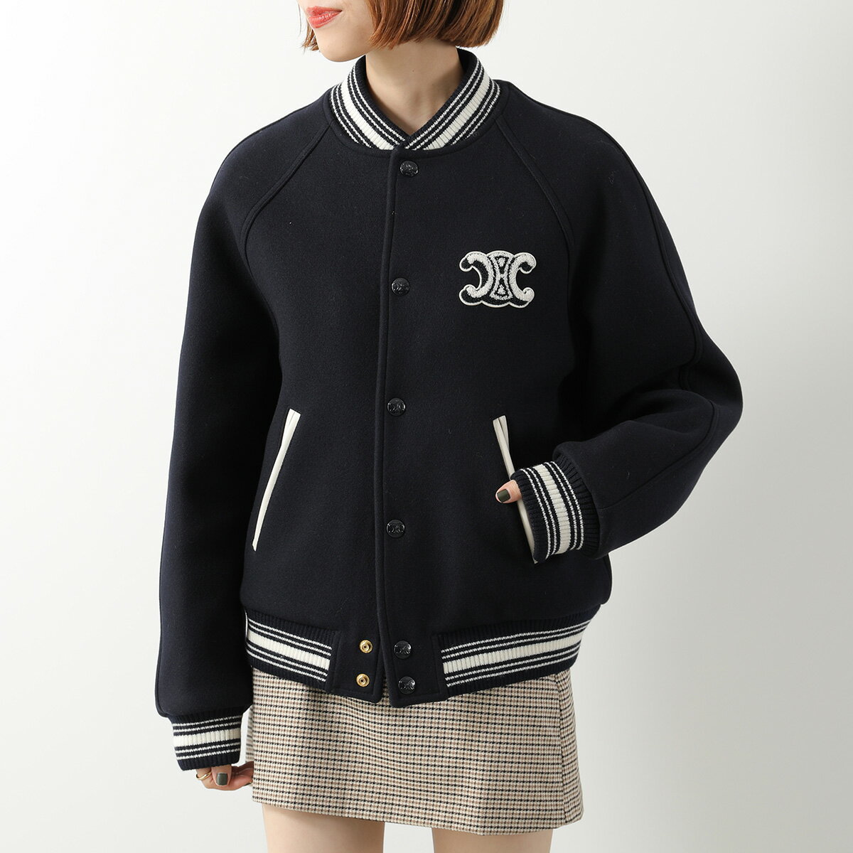 【最大2万円OFFクーポン対象・11/29~12/1限定】CELINE セリーヌ テディジャケット RV0X4 814E.07MR レディース ボンバージャケット ブルゾン ウール トリオンフ ロゴパッチ ネイビー