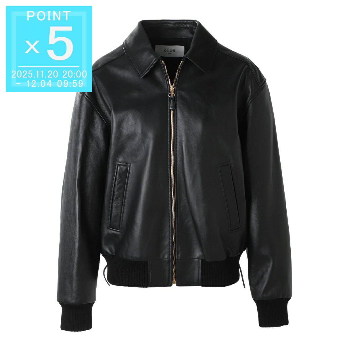 セリーヌ CELINE レザージャケット ブルゾン ブラック レディース rv0ni 305q 38no BLOUSON AVIATEUR DETAIL LACAGE【返品送料無料】[2025AW]
