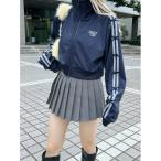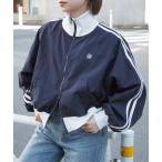 ブルゾン アウター ワンポイント刺繍配色ラインベロアトラックジャケット レディース