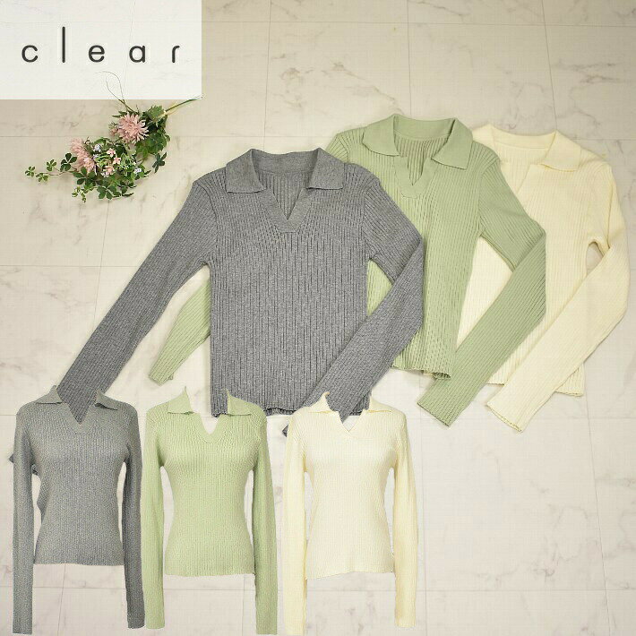 \マラソン期間中P2倍♪定価から50%OFF/clear クリア ポロネック リブニット トップス カットソー 総リブ レディース おしゃれ おすすめ インナー 113511 カジュアル 春/夏/秋 【小】オーバー ニット 長袖 プチプラ 半額