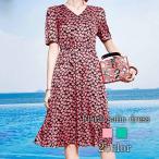 ワンピース レディース 花柄サテンワンピース 60代 10代 ブランド 40代 おしゃれ 秋 人気 50代 オフィス 夏 七分袖 きれいめ 上品 20代 30代 半袖 柄 春