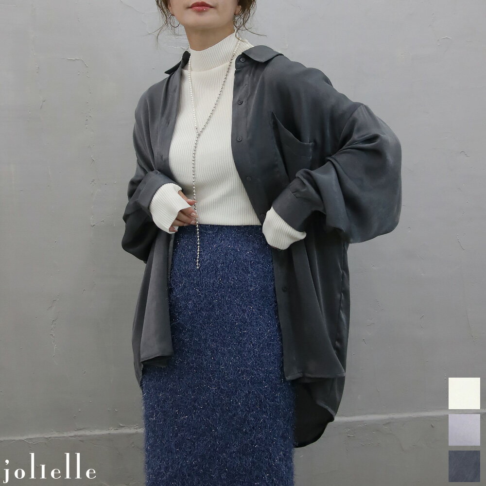 サテンビッグシャツ オケージョン シャツ ブラウス ゆったり シンプル お尻が隠れる【単品でメール便可】サテン オフィス OL 無地 シャツ 体型カバー 春夏 秋冬 羽織り 白 黒 グレー シルバー UV対策 プチプラ 高身長 半額 50%OFF