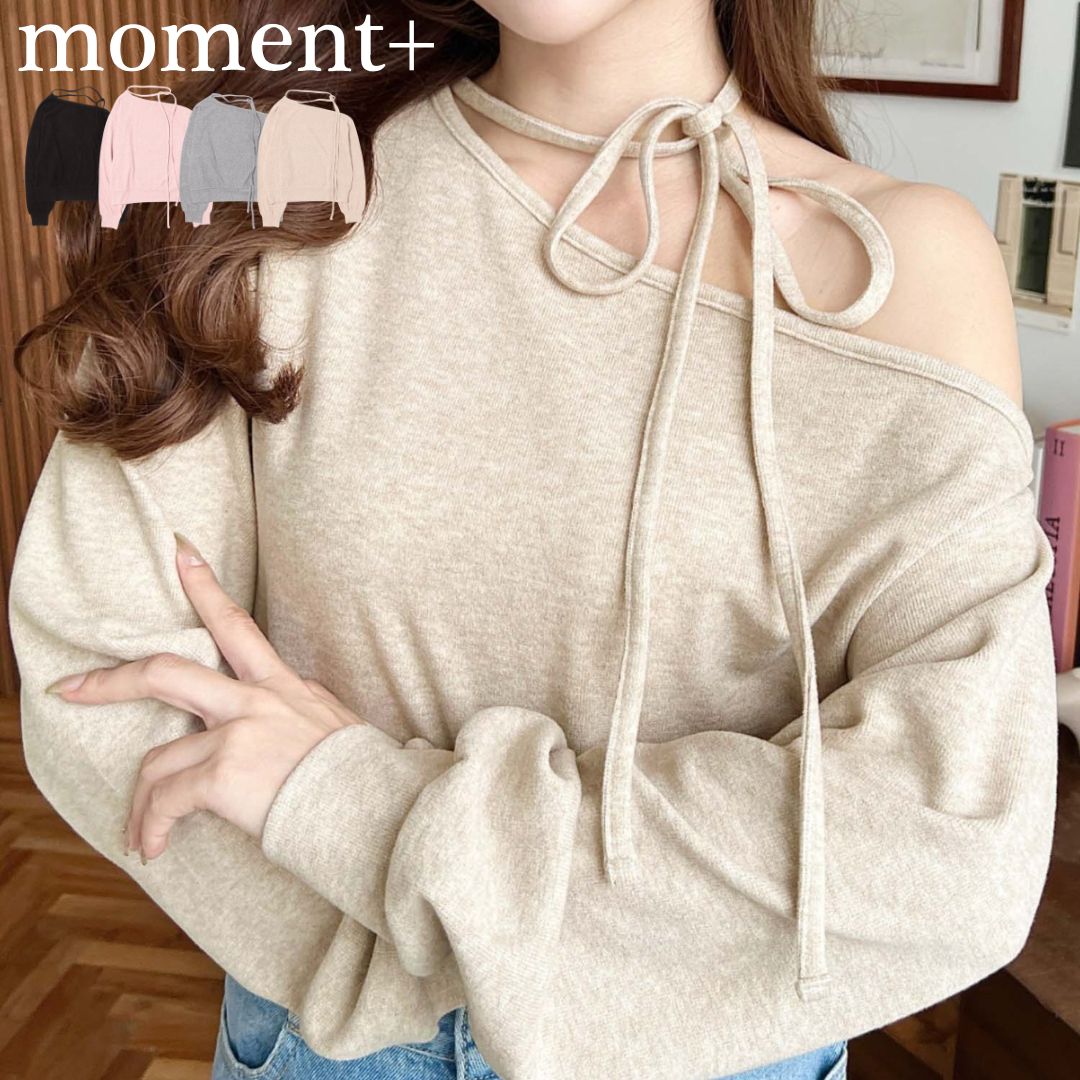 【44%OFF 2,690→1,500円】Tシャツ カットソー ワンショル ネックリボン ロンT ストラップチョーカー 長袖 韓国 かわいい レディース トップス 大人カジュアル プチプラ 定番 2025AW 秋 冬 mt07255 [moment+/モーメントプラス]