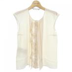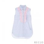 プラダ PRADA シャツ ノースリーブ ストライプ コットン ブルー ホワイト ピンク フリル P425C レディース 中古