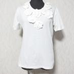 【中古】美品 PRADA プラダ フラワーモチーフ バックリボン クルーネック ショートスリーブ Tシャツ カットソー M ホワイト レディース Luxs ブランド古着のリュクス