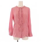 プラダ PRADA シャツ ブラウス バンドカラー 長袖 フリル ワンカラー シルク 38 ピンク /BB レディース