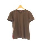 プラダ リネアロッサ PRADA LINEA ROSSA サイドロゴ バックポケット クルーネックTシャツ 半袖 M ブラウン /HK ■OS レディース