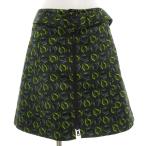プラダ PRADA シルクスカート ひざ丈 フロントジップアップ ベルト付 総柄 38 黒 ブラック 緑 グリーン /GV ■GY11 レディース