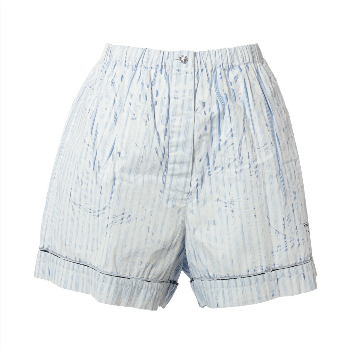 【中古】プラダ 21AW コットン ショートパンツ 38 レディース ホワイト×ブルー P261E ストライプ