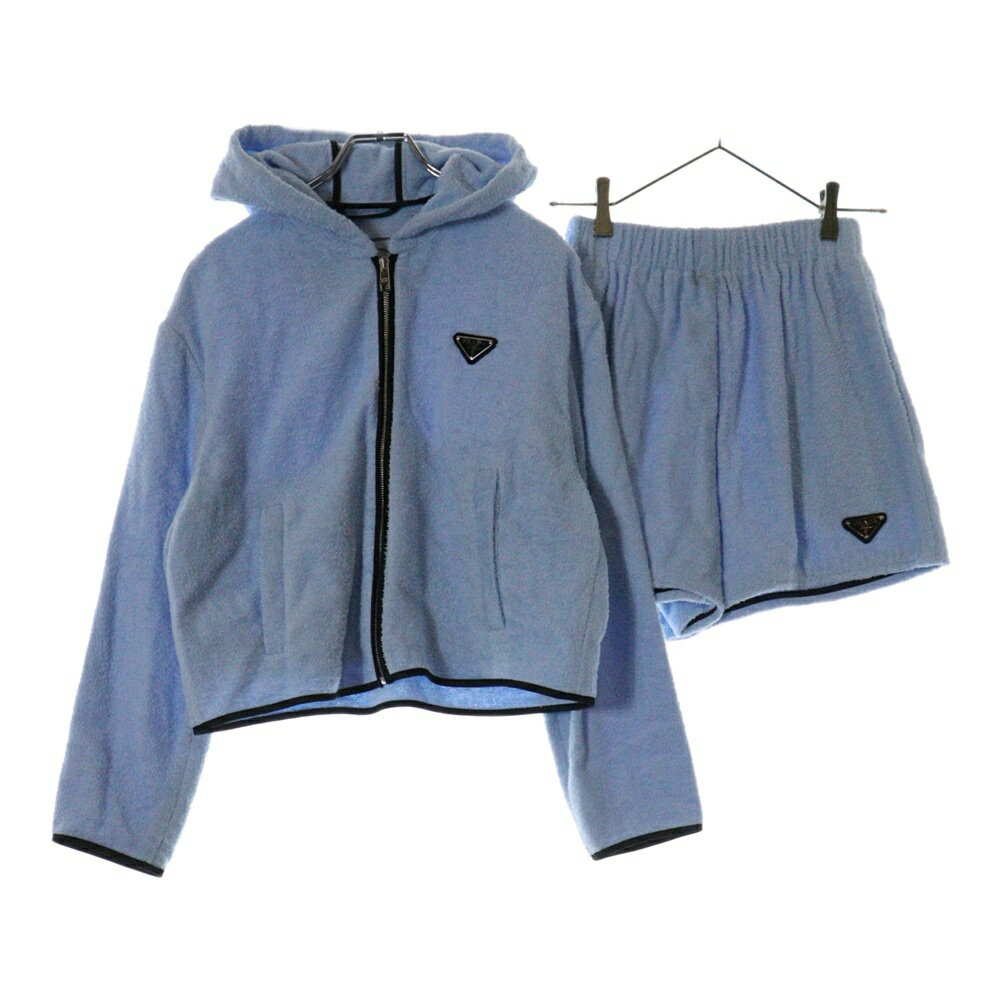 PRADA(プラダ) サイズ:36 SET UP TERRY CLOTH トライアングルロゴプレート ジップアップパーカー ショートパンツ レディース RFID P564M S221 1ZR3 / P292E S212 1ZR3【中古】【程度A】【カラーブルー】【取扱店舗BRING福岡天神店】