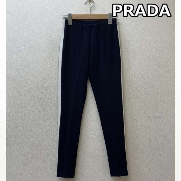 プラダ サイドライン スリム ジャージ トラック パンツ 紺 ネイビー レディース XS【USED】【古着】【中古】50138616