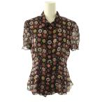 プラダ PRADA シャツ ブラウス 半袖 シースルー 総柄 40 ブラック マルチカラー /DF ■GY17 レディース