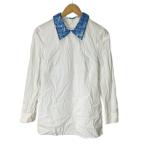 プラダ PRADA スパンコール襟付き シャツ ブラウス チュニック 長袖 40 ホワイト ブルー ■GY06 レディース