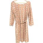 【中古】美品 PRADA プラダ 総柄 長袖 ボートネック ひざ丈 ベルト付き ワンピース 44 ブラウン レディース Luxs ブランド古着のリュクス