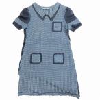 PRADA プラダ 刺繍 ニット シャツ ワンピース ひざ丈 半袖 プルオーバー リネン混 サイズ38 M ネイビー レディース 【中古】