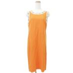 プラダ PRADA 美品 ガラス ビジュー ノースリーブ ドレス ワンピース 40 S〜Mサイズ 橙色 オレンジ IBO58 レディース