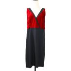 良品 PRADA プラダ ベロア切替 カシュクールドレス ワンピース 40 ブラック レッド レディース 古着 中古