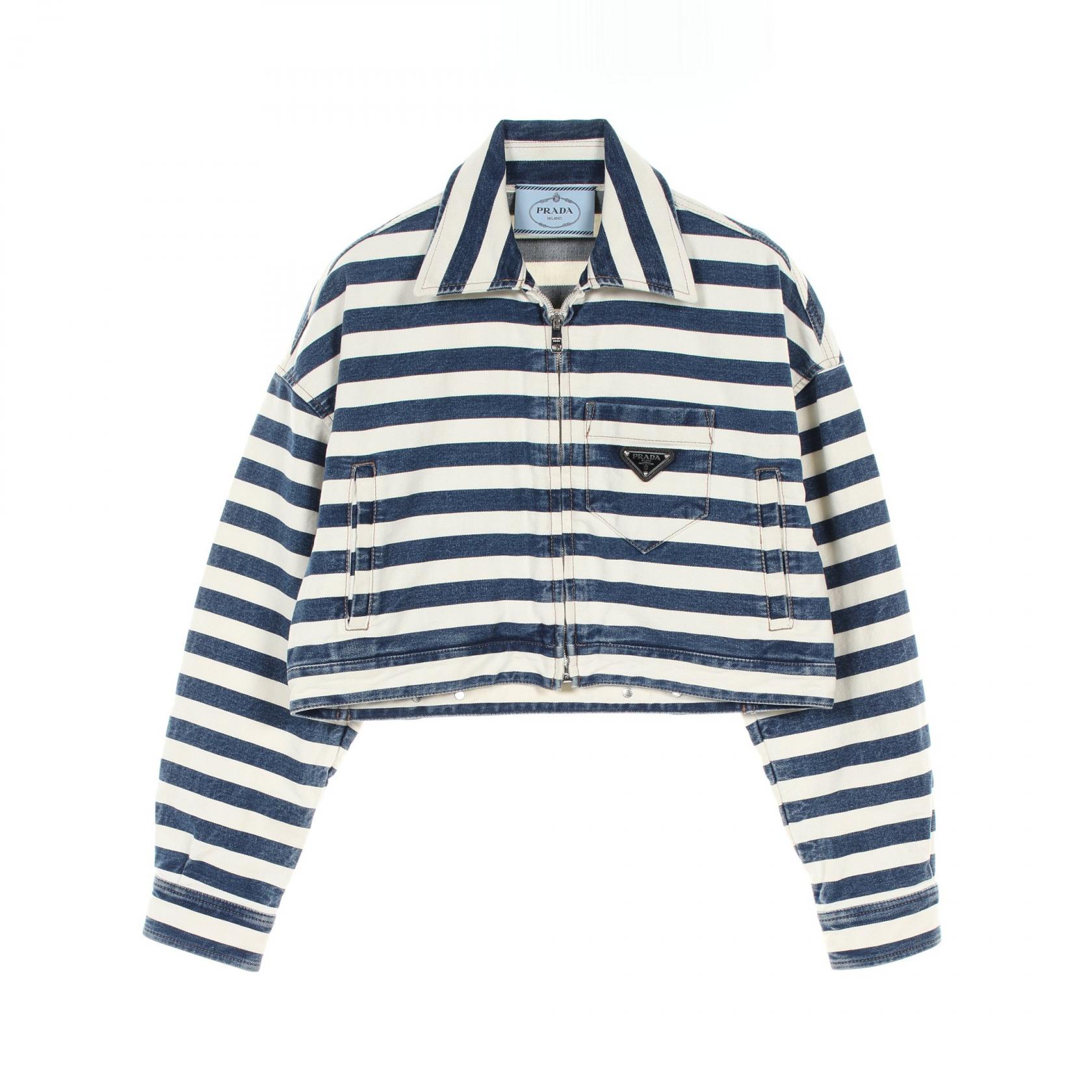 ◆まとめ買い|20%OFF対象◆プラダ PRADA デニムジャケット 衣料品 アウター コットン レディース ネイビー系 / ホワイト系 GFB288 【中古】