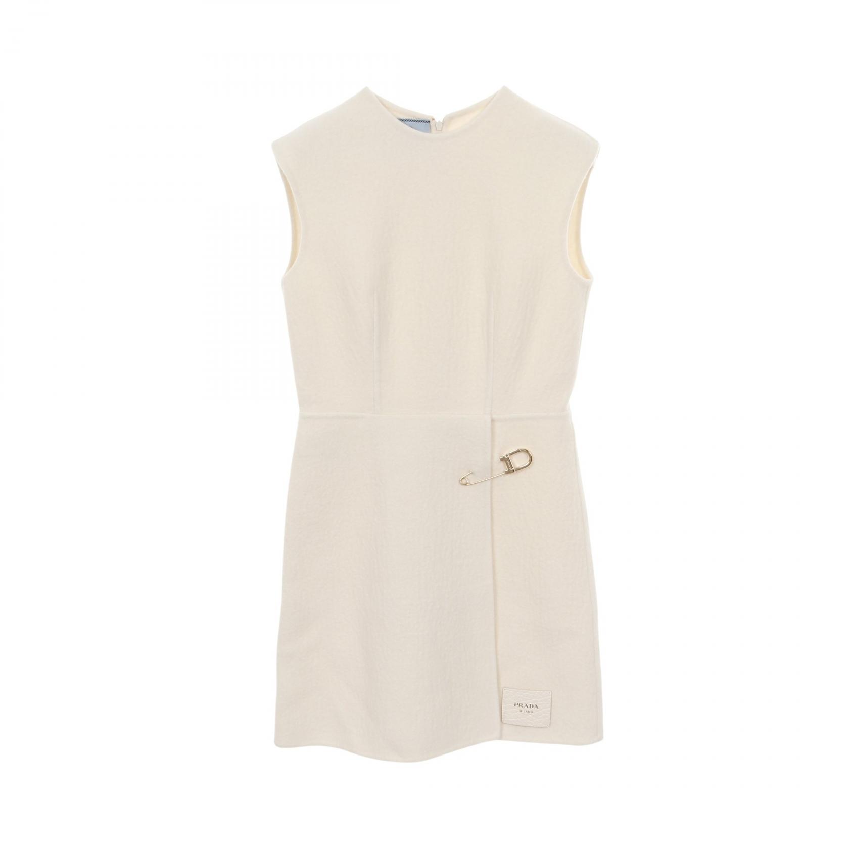 ≪5%OFF&まとめ買い対象≫プラダ PRADA ウォッシュドツイルミニドレス ワンピース 衣料品 トップス ウール レディース アイボリー系 P3K49E 【中古】