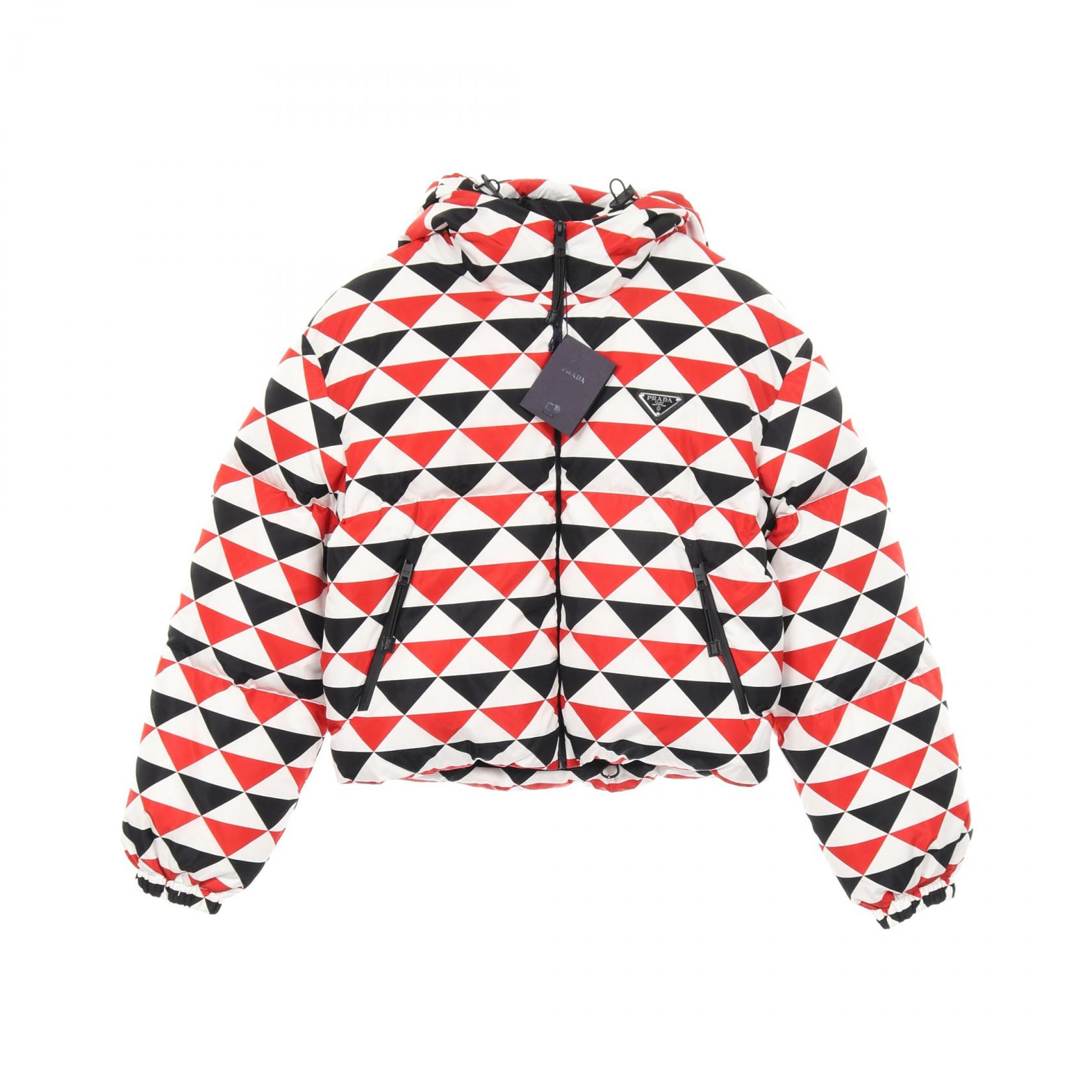 ◆全品5%OFFクーポン対象◆プラダ PRADA ダウンジャケット 衣料品 アウター ナイロン レディース ホワイト系 / ブラック系 / レッド系 29M698 【中古】