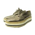 プラダ PRADA レザーシューズ ウイングチップ プラットフォーム 厚底 メタリック調 レザー 37.5 24.5cm ゴールドカラー 0209 ■MNK5