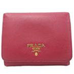 プラダ PRADA サフィアーノ 3つ折り財布 ウォレット ロゴ金具 レザー 皮革 赤 レッド レディース