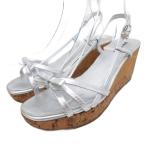 プラダ PRADA 厚底サンダル ミュール ウェッジソール リボンモチーフ 38 25cm シルバーカラー ■IBO93 レディース