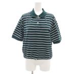 プラダ PRADA クロップド ポロシャツ コットンピケ 半袖 ボーダー 三角 トライアングル ロゴ ワッペン 40 緑 グリーン レディース
