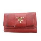 プラダ PRADA レザー リボン キーケース ロゴ 赤 レッド /SR ■OH レディース