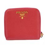 プラダ PRADA 二つ折り財布 コンパクトウォレット スクエア レザー ロゴ 赤 レッド /BB ■OH レディース