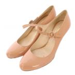 プラダ PRADA ストラップパンプス ラウンドトゥ ハイヒール エナメル ワンカラー 39.5 ピンクベージュ /BB レディース