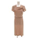 プラダ PRADA ワンピース リボン ドット シルク ロング丈 半袖 42 ピンク /FF レディース