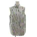 プラダ PRADA シャツ ブラウス シルク 絹 総柄 ハイネック ノースリーブ 40 青 ブルー /FF■GY62 レディース