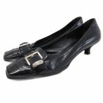 プラダ PRADA パンプス シューズ ポインテッドトゥ ベルト エナメル 35 黒 ブラック レディース