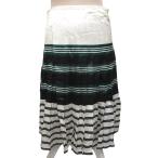プラダ PRADA プリーツスカート フレアスカート ひざ丈 ボーダー レーヨン 38 アイボリー 緑 グリーン 黒 ブラック P1922J ■IBO91