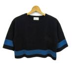 プリングル1815 ニット トップス 五分袖 プルオーバー ショート丈 レディース UK10サイズ 黒×青 PRINGLE 1815
