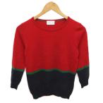 プリングル Pringle 1815 ニット セーター 長袖 ウール UK10 赤 レッド 紺 ネイビー 緑 グリーン S5N22-200-16 ■YHS10 レディース