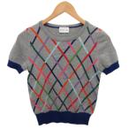 プリングル Pringle 1815 ニット セーター 半袖 総柄 10 グレー 紺 ネイビー S5N04-601-07 ■YHS10 レディース