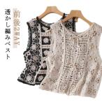 クロシェ編み ベスト レディース 透かし編み ベスト レイヤード ニットベスト カーディガン 夏 涼しい かぎ針編み 花柄 ニットレース ベスト ショート丈 プルオーバー 重ね着 通勤 きれいめ レトロ おしゃれ 大人カジュアル ゆったり 送料無料