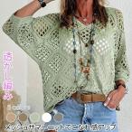 ニット 透かし編み 半袖 プルオーバー メッシュニット 風感じる サマーニット サマーニット レディース 透け トップス セーター 大きいサイズ かぎ針編み 春夏